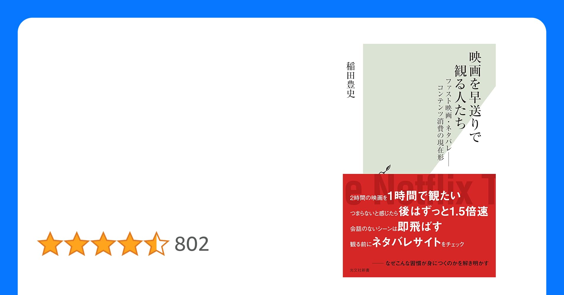 たとえばドラマ批評の企画をやろうと思ったら、本当にさまざまなドラマを観ておかないといけない。最近ヒット中の稲田豊史さんの著書『映画を早送りで観る人たち』に、稲田さん自身が仕事のために映画を倍速で観ていたことが書かれている。